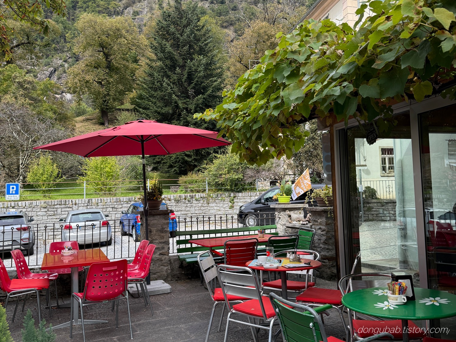 이탈리아 특유의 바(Bar) 느낌이 아니라, 스위스식 시골 카페 감성.