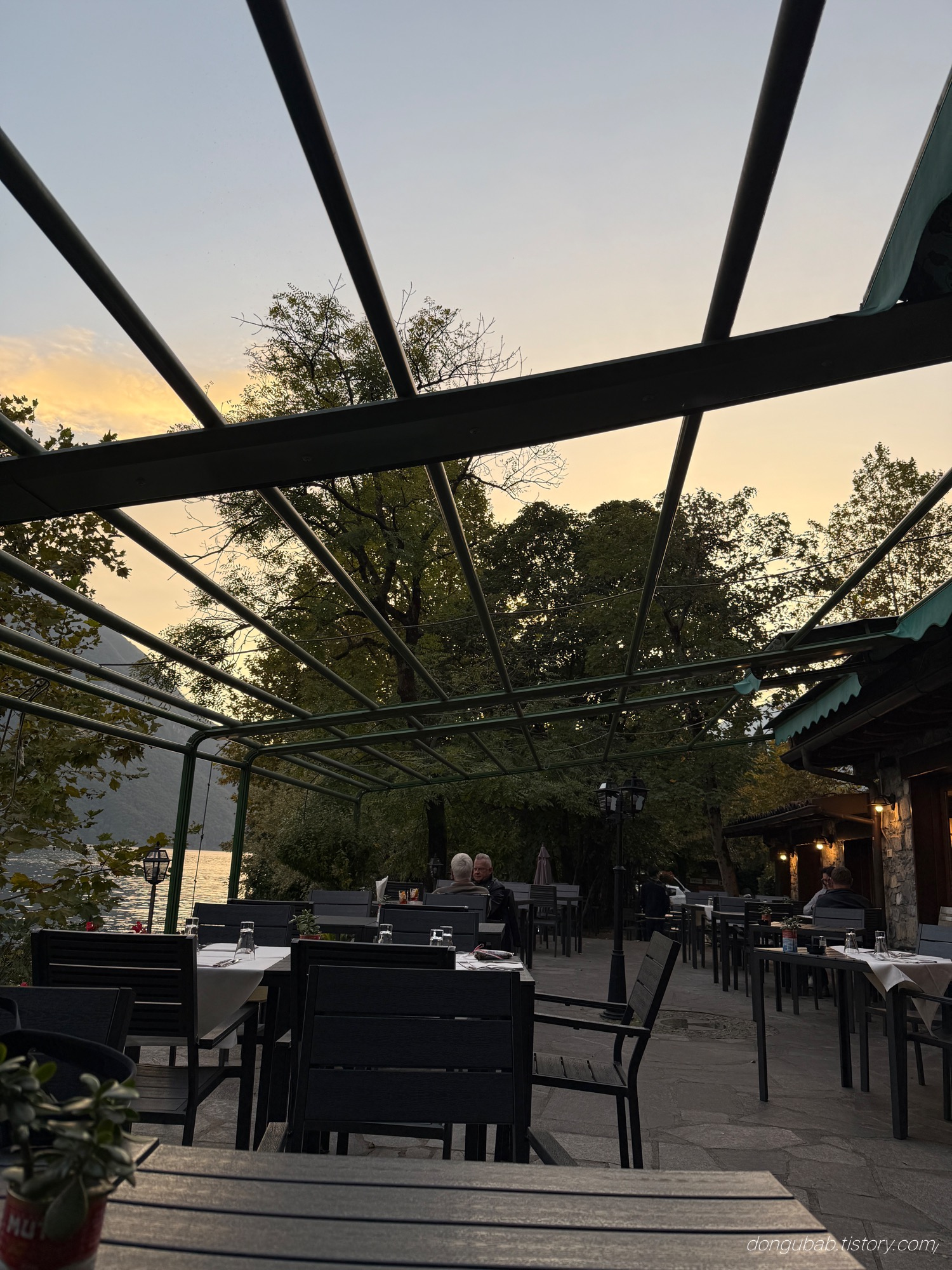 호수 보며 먹는 저녁