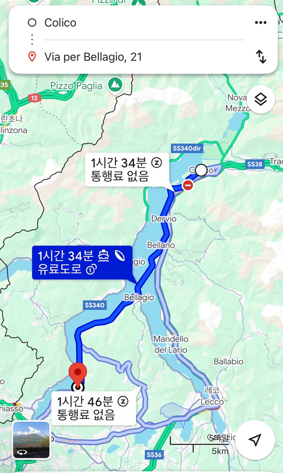 예전에 인스타에 봤던 아름다운 풍경 Nesso 를 들를 수 있는 길이었다