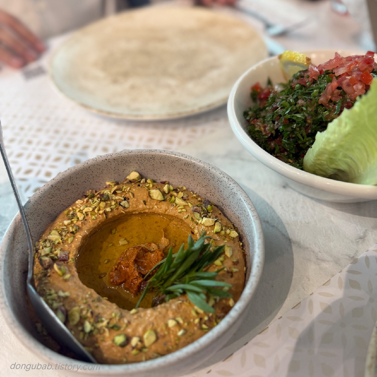 구운 빨간고추 + 호두 + 올리브오일이 베이스인 레바논 딥.