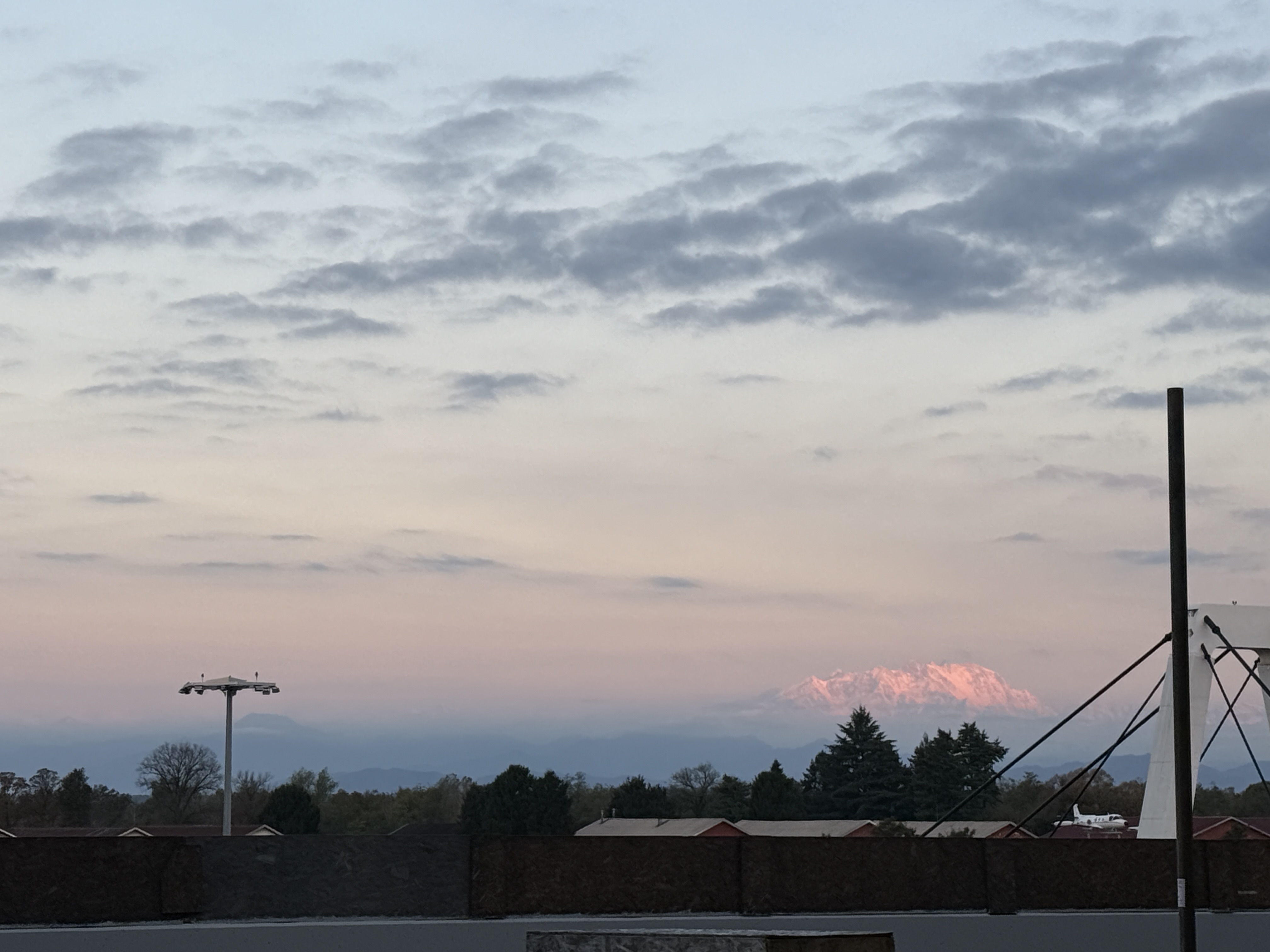 새벽녘, 알프스 산맥이 보이는 밀라노 도착
